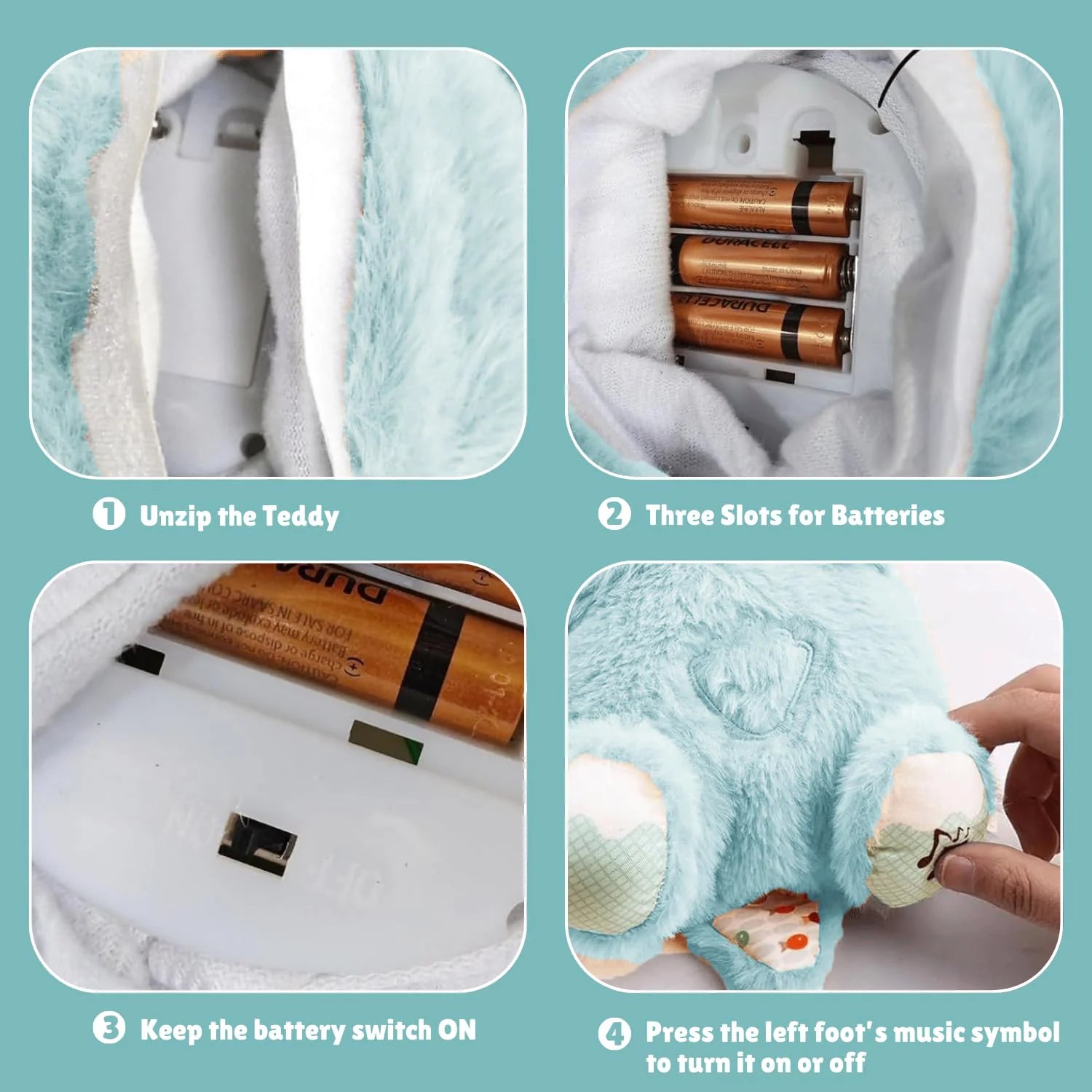 - Design: Teddy bear with light-up belly and music playback